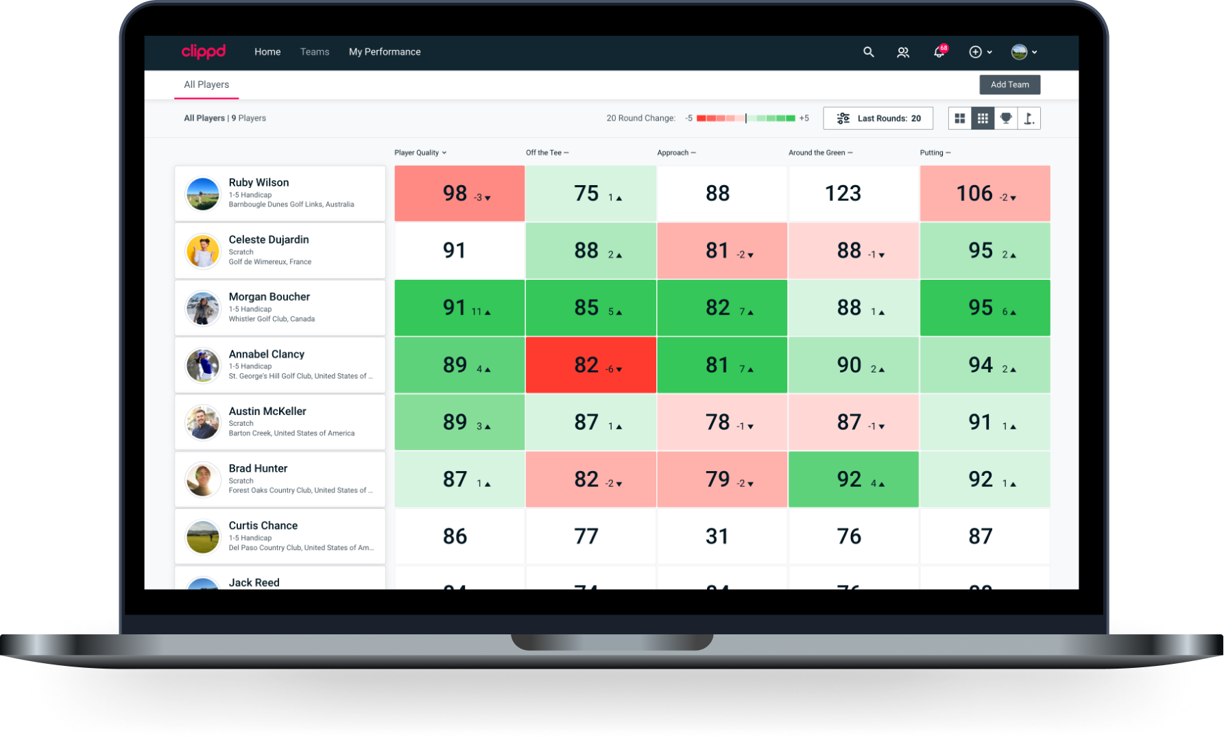 Clippd’s team dashboards show your players’ current skill levels, form and trends. Get an instant, updated view of their game.